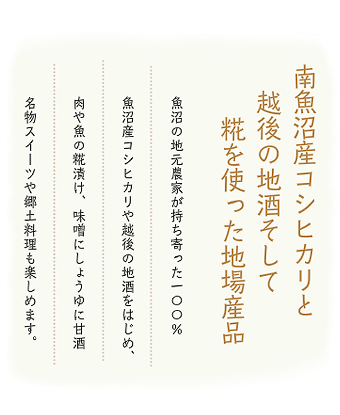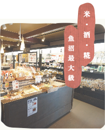 発酵食品と地元食材の商品をテーマにしたコメトハナに来たらまずトリカラ!揚げたてアツアツのとりの唐揚げは糀と米粉で味付けした人気商品。新潟名物の鶏の半身揚げもあるよ。店内入り口付近には南魚沼産の米粉を使ったオリジナル食パン。地元のハチミツを練りこんであるのでほんのり甘くてふわふわの食パンは昼前に売り切れになることが多く、お電話でのご予約をお勧めしているほど。