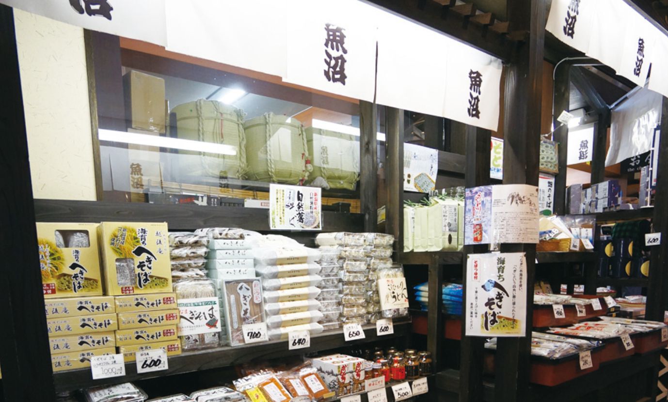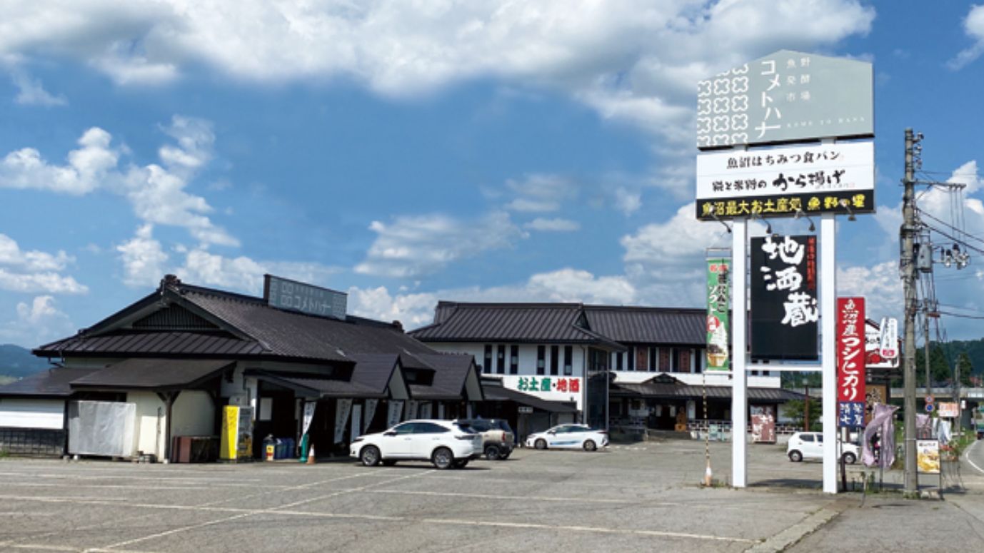 魚沼最大級の土産処「魚野の里」は郷土料理のお食事処・越後の地酒を取り揃えている地酒蔵・越後魚沼のお土産物産館・南魚沼産コシヒカリの米屋清七・糀と米粉や発酵食品から地場産品を取り揃えたコメトハナ と五つのエリアに別れています。