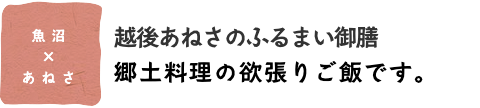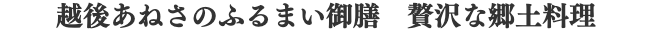 あねさのふるまいメニューは魚の越後味噌漬焼や南蛮海老のお造り、車麩と山菜の煮物など大満足の郷土料理となっています。