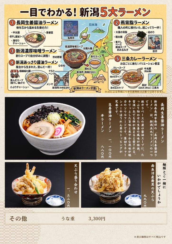 この度、併設のお食事処(レストラン)のメニューがリニューアルいたしました!新潟・魚沼の豊かな食文化をより深く、より美味しく味わっていただけるよう、こだわりのメニューを取り揃えております。南魚沼でのドライブやご観光のランチに、ぜひお立ち寄りください。